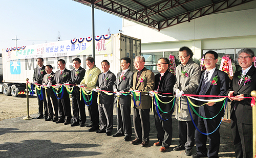 한국 토종닭이 베트남 상류층을 대상으로 한 프리미엄 닭고기 시장을 겨냥, 처녀수출길에 올랐다. 한국토종닭협회(회장 김연수)와 싱그린푸드(대표 김준영)는 지난달 29일 전북 익산소재 싱그린푸드 본사에서 토종닭 베트남 수출 기념식<사진>을 가졌다. 이날 기념식에서는 김연수 회장을 비롯해 닭고기수출사업단 강창원 교수(건국대), 전북양계산합협력단 류경선 교수(전북대)를 비롯해 토종닭업계 관계자 100여명이 참석한 가운데 열렸다. 특히 이번 수출은 그 동안의 닭고기 수출이 산란노계나 삼계탕 위주였으나 베트남 프리미엄 시장을 겨냥한 것으로 그 의미가 크다. 마리당 수출 가격 역시 3.15달러로 향후 닭고기 수출 시장을 주도해 나갈 것으로 기대되고 있다. 싱그린푸드는 올 연말까지 10만수 가량의 토종닭을 수출할 계획이며 내년에는 이보다 더 많은 물량이 수출될 것이라고 밝혔다. 김준영 대표는 “우리나라 토종닭은 베트남 국민들의 입맛과 식성에 가장 좋은 육질을 가지고 있다”며 “이번에 수출하는 토종닭은 인삼을 접목시킨 프리미엄 제품으로써 베트남 상류층을 겨냥한 것으로 안정적인 공급과 일정한 가격만 유지한다면 연간 1천만불 이상의 수출도 가능할 것”이라고 밝혔다. 김연수 회장은 “싱그린푸드의 노력과 토종닭협회의 적극적인 지원으로 이번에 토종닭이 베트남으로 수출하는 쾌거를 이룩했다”며 “향후 대한민국 대표 닭고기로서 토종닭이 자리매김할 수 있도록 다함께 노력해 나가자”라고 말했다. |