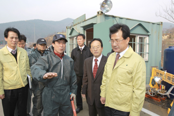 이시종 충북지사는 지난달 30일 괴산군 연평IC 구제역 방역현장을 직접 방문해 방역 상황을 점검하고 관계자들을 격려했다. 이시종 지사는 밤이 되면 살포된 소독약이 얼어 교통사고의 우려가 있다며 열선 등을 설치해 소독약이 얼지 않도록 대책을 강구할 것을 지시했다. 이어 한우지정목장 (대표 김동욱)을 찾아 축산농가 방역상황을 살펴보고 힘들지만 사전 방역을 철저히해 구제역이 발생되지 않도록 해달라고 당부했다.