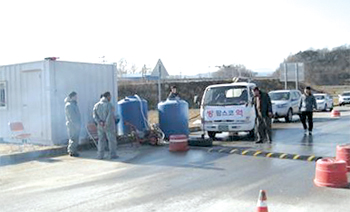 사료와 계열 신선육 등 각 사업부별 조치사항들을 전사적으로 알리고, 공장 주변 소독 강화와 방역 용품과 생석회, 소독약, 연막 소독기, 차량용 분사기 등을 지원하여 농장입구 및 주변소독을 철저히 실시<사진>하고 있다. 뿐만 아니라 실시간 상황들을 알리고 구제역 비상사태를 논의하는 등의 협조체제를 갖췄다. 현장에서는 지역부장들이 방역단을 결성해 방역의식을 고취하고, 생석회, 도포작업을 실시하는 등 사양가들과 한마음이 되어 방역 일선에 나서고 있다. 정학상 대표이사는 구제역으로 인해 누구보다 불안한 고객들을 생각하고, 지역내 가장 빠른 대처 활동으로 팜스코의 저력을 보여주자며 구제역 위기 극복에 강한의지를 표했다. 팜스코는 잠복기 등을 고려하여 추가 발생 유무와 상관없이 방역 활동을 지속적으로 실시할 예정이다. |