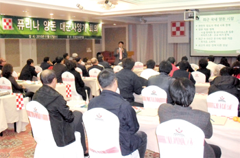 퓨리나사료(대표 이보균) 32지구(영업이사 신상곤)는 지난달 17일 창원에서 ‘지속가능한 양돈산업을 위한 국제경쟁력 강화방안’을 주제로 양돈 대군사양가 회의를 갖고, 최근 급변하는 양돈시장에서 양돈 산업이 미래에도 지속 가능하기 위한 필요한 경쟁력 강화 방안에 대해 토론을 함께했다.