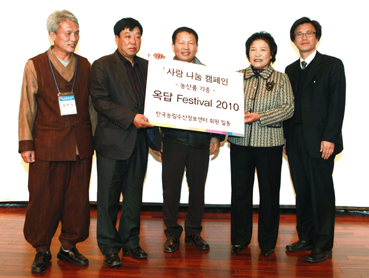한국농림수산정보센터(이하 정보센터, 사장 전순은)는 지난달 24, 25일, 양일에 걸쳐 충남 예산에서 옥답 우수회원 120여명과 함께 ‘옥답 Festival 2010’을 진행했다고 밝혔다. 옥답 Festival 2010은 올해로 벌써 7회째로 ‘옥답과 함께하는 농식품인 비전 트립, 무엇이 성공을 이끄는가’라는 부제로 농식품 경영과 트렌드, 성공 스토리 등의 정보공유를 통한 농식품인의 비전을 형성하는 자리였다. 정보센터에서 준비한 비전 형성 5단계 프로그램은 ‘비전 자극-트렌드 탐구-비전 형성-비전 실행-농식품 미래 비전’으로 각 단계마다 농식품인들의 재능과 비전을 일깨워 줄 성공한 농식품 CEO 이창효(다자연영농조합법인)·김영삼(마이산햇살드림) 대표, 자기경영 전문가 공병호 소장(자기경영과 자기혁신법), 김광호 원장(무엇이 성공을 이끄는가?) 등이 강사로 나서 메시지를 전달했다. 해마다 옥답 회원과 함께하는 ‘사랑나눔 캠페인’은 올해 약 180여만원 상당의 농산물 기증품(사과, 단감, 쌀, 배추 등)을 모아 지리산고등학교에 전달<사진>해 훈훈한 이웃사랑을 확인, 옥답 Festival 2010의 의미를 더했다. |