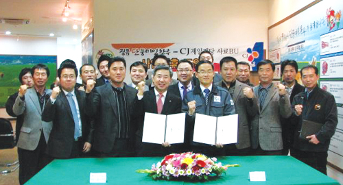 기술력·생산력 바탕 최고의 명품브랜드로 CJ제일제당 사료사업부문은 1973년 첫 제품을 출시한 이후 업계를 선도하는 제품과 서비스를 바탕으로 고객의 성공파트너로 성장해 왔다. 인천·군산·원주 3개 공장에서 사료를 생산하고 있으며, 자체 운영 중인 사료축산연구소는 최고의 R&D 기술력과 핵심인재, 최신 분석 장비를 보유하고 있다. 이날 행사를 주관한 강성훈 지구부장은 “고급육 생산에 뛰어난 성적을 나타내고 있는 단풍미인한우와 CJ사료의 기술력이 함께 할 경우 큰 시너지 효과를 발휘하게 될 것으로 기대한다”고 발표했다. 한편 CJ제일제당 사료BU 남기돈 축우PM은 양사 사업제휴 조인식에 앞서 개최된 2011년도 한우산업의 과제에 관한 주제 발표에서 “한육우 사육두수 증가에도 불구하고 도축두수는 늘지 않고 있다”며 “이는 사육패턴이 장기비육으로 바뀌고 있기 때문으로 일정기간 후에는 출하물량의 증가로 인한 가격하락이 불가피할 것으로 예상된다”고 밝혔다. 남 축우PM은 또 “이를 극복하기 위해서는 생산비 절감과 함께 고급육 생산에 주력해야 한다”며 “1++ 등급의 경우 가격의 변동이 크지 않은 반면에 낮은 등급일수록 가격 하락폭이 크게 나타났다”고 설명했다. 이에 따라 2011년 한우산업의 과제로 △고급육 생산 주력 △생산비 절감 노력 지속 △암소사육 및 송아지 입실 신중 등을 제시했다. |