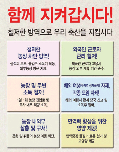 외국인근로자 관리 철저 당부 면역력 증강 고영양사료 제공 너나없는 단결만이 종식의 길 구제역으로 인한 국내 축산업이 최대 위기를 맞고 있는 가운데 카길애그리퓨리나(대표 이보균)가 철저한 방역으로 우리 축산을 함께 지켜가자는 캠페인을 벌이고 있다. 퓨리나사료는 생석회 도포, 출입구 소독기 작동 등 철저한 차단방역과 외국인 근로자 고용시 농장 외부 계류 기간을 준수하는 등 외국인 근로자의 관리를 철저히 하자고 당부했다. 농장 뿐만 아니라 주변에 대한 소독도 철저히 할 것과 쥐들의 농장 이동을 차단할 수 있는 농장내외부 살충 및 구서 작업에도 신경써 줄 것을 당부했다. 퓨리나사료는 가축의 면역력 증강을 위해 면역증강 물질인 바로돈을 첨가한 고영양사료를 제공하고 있다고 덧붙였다. 퓨리나사료 관계자는 “지금은 마음과 몸을 하나로 모아 구제역 방역에 철저를 기할 때인 만큼 철저한 방역으로 우리 축산업을 지켜가자”고 호소하고 있다. |
