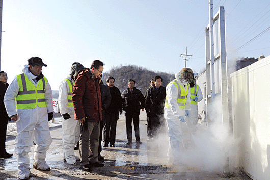 이명박 대통령은 지난 16일 강원도 횡성군 구제역 방역현장을 방문, 설 연휴 이전에 구제역을 최대한 막을 것을 당부했다. 이 대통령은 구제역과 관련해 백신을 활용해 사전에 예방하고 살처분을 최소화 하겠다는 정부 방침을 방역 관계자에게 밝혔다. 이 대통령은 또 횡성축협 한우프라자에서 축산농가, 지역 상인, 방역 관계자들과 함께 한우국밥으로 식사를 했다.