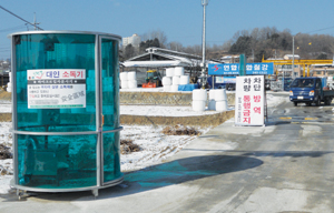 바닥센서로 오작동 막고 공구없이 조립 설치 간편 마이크로 입자 소독액 분사형 대인소독기도 선봬 최근 축산현장에서는 구제역과 AI 차단방역 보다 더 급한 일은 없다. 그러나 연일 추위가 맹위를 떨치면서 축산농가들은 차단 방역의 기본인 소독에 큰 어려움을 겪고 있다. 소독약이 얼어붙어 제기능을 발휘하지 못하기 때문이다. DS스틸(주)(대표 이대섭)은 축산농가의 이 같은 고충을 덜어주기 위해 ‘동파 방지형 차량 소독기’와 ‘초미립자 분사 대인 소독기’를 개발, 공급에 나서 주목되고 있다. DS스틸은 그동안 ‘풀우리’ 조사료 급이기로 축산농가의 생산성 향상과 생산비 절감에 기여해온 업체로서 이번에 소독기계를 새로 선보이면서 축산농가들의 관심을 끌고 있다. 이대섭 대표는 기존의 차량 방역기의 상당수는 철공소 등 비전문가들에 의해 현장에서 가공 설치된 것이 많다며, 이들 방역기는 규격화 돼 있지 않고 설치시간이 많이 들 뿐만 아니라 하자발생도 잦아 질병 방역에 어려움을 주고 있다고 지적, 새로운 방역기 개발에 나섰다고 밝혔다. DS스틸이 개발한 방역기는 지난해 11월 강원도 횡성에 설치해 가동해 본 결과 최근 섭씨 영하 24도를 밑도는 날씨에서도 24시간 정상 가동됐다며 동파 우려 불식과 함께 효과적인 방역을 할 수 있었다는 설명이다. |