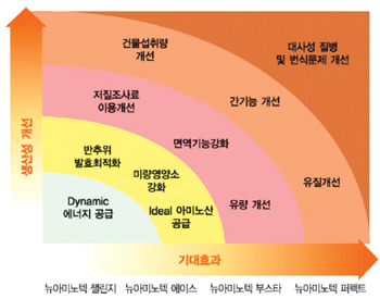 뉴아미노텍은 퍼펙트, 부스터, 에이스, 챌린지 4가지 제품 라인업이며 고능력우의 유량에 따라 선택하여 적용할 수 있도록 디자인되었다. 또한, 금번 신제품의 생산비 절감효과를 검증하기 위하여 CJ제일제당에서는 IOFC 개념을 도입하여 실제 납유한 우유가 만들어지는 생산원가를 고려한 수익성 분석을 가능하도록 하였다. CJ제일제당 박영준 축우PM은 “낙농의 기본인 유량을 극대화하여 대한민국 6천2백여 낙농사양가들이 모두 큰 수익을 얻을 수 있도록 노력하겠다”고 전했다. |