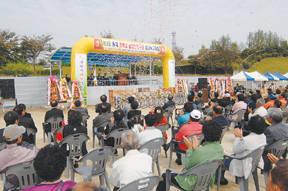 충북 품목별 농축산분야 연구에 대한 성과를 분석하고 농가간 활발한 정보교류의 장이 마련됐다. 충북도 농업기술원(원장 조광한)이 주최하고 충북품목별 농업인연구회연합회(회장 노기택)가 주관한 제1회 품목별 농업연구회 성과보고대회<사진>가 지난 5일 충북농기원 운동장에서 열렸다. 보고대회에는 이시종 충북도지사, 조광한 충북농기원장, 정헌 충북도의원, 김일원 충북농협본부장, 신관우 충북축산단체협의회장, 충북한우고급육연구회 등 8개 품목 연구회원 가족, 관계 공무원 등 1천여명이 참석했다.