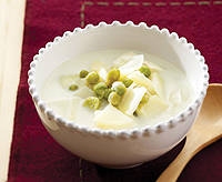 3. 감자가 익으면 대충 으깨고 완두콩과 우유 1컵을 넣어 끓인다.
