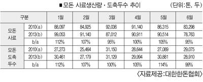 이후 3개월이 지난 6월 모돈사료 생산량은 7만8천763톤으로 9.5%가 감소했다.