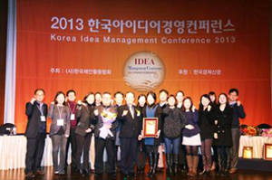 ‘2013 한국아이디어 경영대상’은 기업부문에서는 코스틸(제조부문, 대표 김정빈)과 한국남부발전(공기업부문, 사장 이상호), 강원랜드(공기업부문, 대표 최흥집)와 삼성토탈(화학부문, 사장 손석원), 한국남동발전(공기업부문, 사장 허엽)과 한국동서발전(공기업부문, 사장 장주옥), 카길애그리퓨리나(제조부문, 대표 이보균) 등 총 7개사가 수상했다