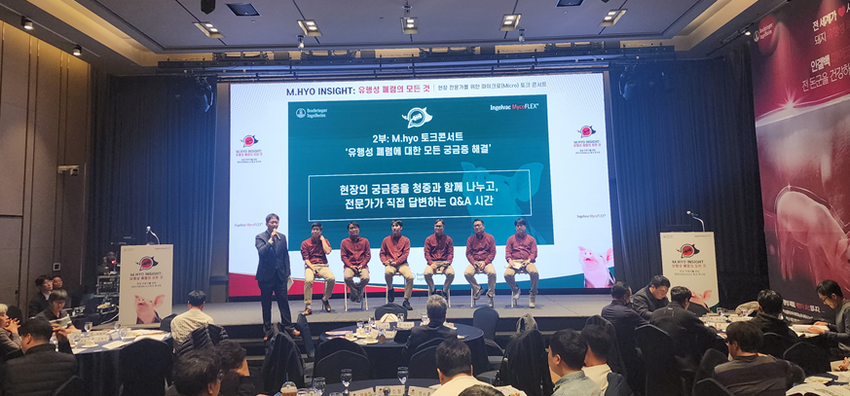한국베링거인겔하임동물약품(대표 서승원)은 지난 5일 대전 롯데시티호텔에서 ‘M.HYO INSIGHT’ 세미나를 열고 돼지 유행성폐렴 최신 동향, 컨트롤 전략 등을 논의했다.