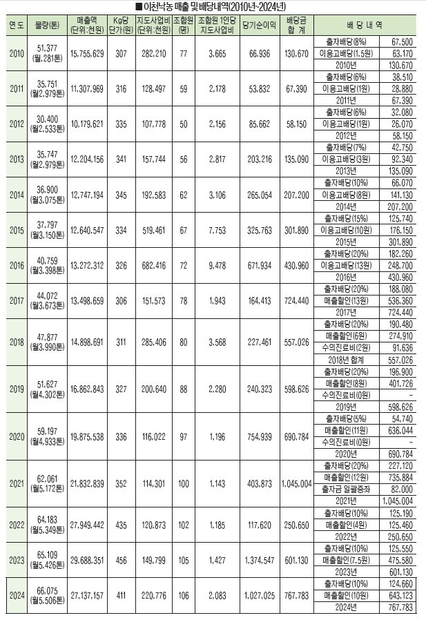 배당·지원·선진지 견학 등 조합원 실익 중심 다각정책 지속 추진