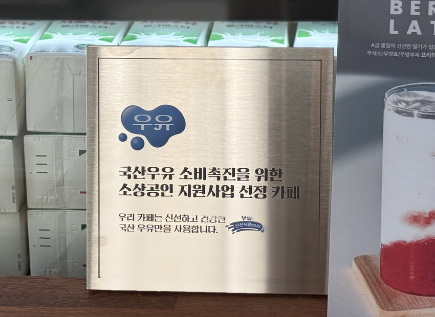 2024년부터 시작된 이 사업은 우유자조금은 국산우유를 사용해 메뉴를 판매하는 매장 중 일정 관리기준을 준수하고, 개인카페 소상공 업소 중 우유자조금 인증점으로 선정해 국산우유 제품지원, 할인행사, 레시피 개발 교육, 홍보물 등을 지원하고 있으며, 올해까지 총 213곳이 인증을 받으며 카페 사장들로부터 호평을 받고 있다.