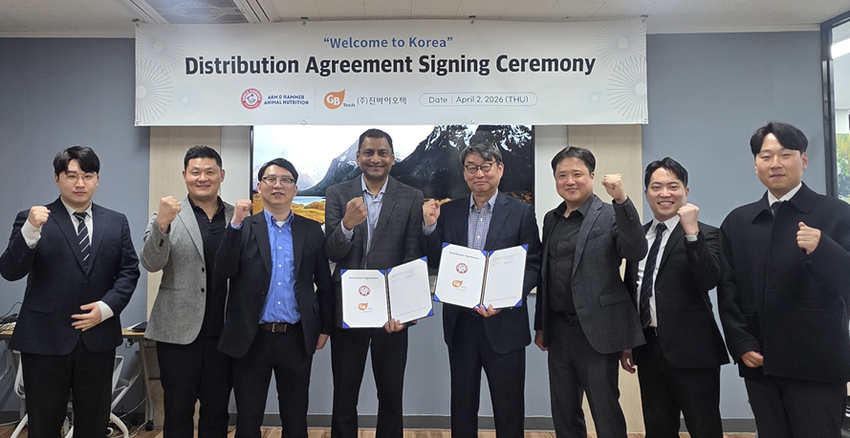 진바이오텍(대표 이찬호)은 지난 2일 미국 암앤해머(Arm & Hammer Animal Nutrition)와 협약식을 맺고, 암앤해머 프로&프리바이오틱스 제품을 국내 공급한다.