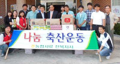 농협사료 전북지사(지사장 권용학)는 지난 달 24일 나눔축산 운동의 일환으로 김제시 장애인 종합복지관을 찾아 전직원이 낙농가를 돕기 자발적으로 구입한 전지분유등을 기부하는 행사<사진>를 가졌다.