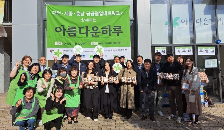 축산물품질평가원, 가축위생방역지원본부, 농림수산식품교육문화정보원, 독립기념관, 창업진흥원, 한국산림복지진흥원, 한국해양교통안전공단 등 7개 기관으로 구성된 공공협업네트워크는 지난 10일 아름다운가게 세종고운점에서 아름다운가게, 가치플러스 사회적협동조합과 함께 임직원 기부 물품 판매전 ‘아름다운 하루’를 개최했다.