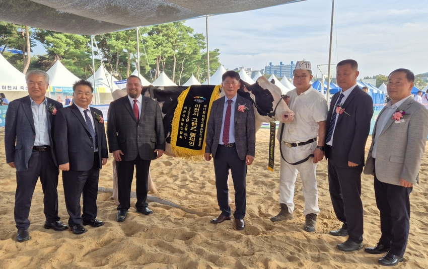 심사 결과 그랜드챔피언의 영광은 이시돌목장(대표 경병희, 모가검정회)의 ‘이시돌 매구첸 유닉스 2108호-이티’<사진>에게 돌아갔으며, 준그랜드챔피언은 후안목장(대표 이경호, 호법검정회)의 ‘후안 시드 바이웨이 949호’가 수상했다.