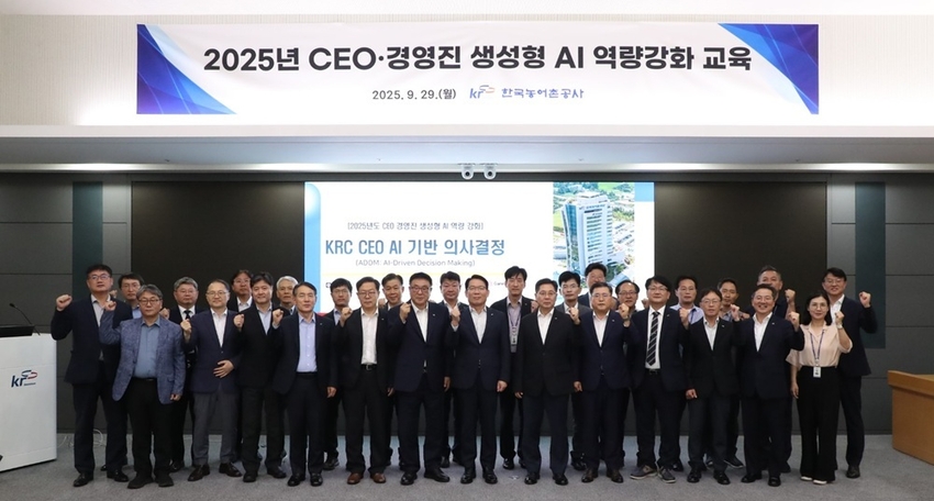 농어촌공사는 지난 9월 29일 전남 나주 본사에서 경영진과 부서장을 대상으로 ‘생성형 인공지능 역량 강화 교육’을 개최했다. 이번 교육은 인공지능 실행력을 갖춘 리더를 양성하기 위한 프로그램으로, 김인중 사장을 포함한 경영진 및 부서장 40명이 참석했다.