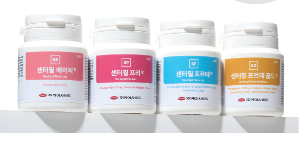 ‘센터필 시리즈’는 ‘개의 심장, 그 모든 단계에 완벽하게 맞춘 치료 솔루션’ 이란 슬로건 하에 심장의 병태생리 진행 단계(수축력 저하 → 후부하 증가 → 체액정체 → 구조적 리모델링)에 따라 4가지 제품을 단계별로 병용 확대할 수 있다.