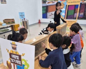 특히 어린이와 가족 단위 관람객들을 위한 ▲벌꿀 채밀체험 ▲밀랍초 만들기 ▲투명 벌통 속 여왕벌찾기<사진> 등 체험행사가 진행돼, 아이들이 직접 꿀벌의 생태를 이해하고 익히며 환경 보전의 중요성을 자연스럽게 터득하는 기회가 됐다.