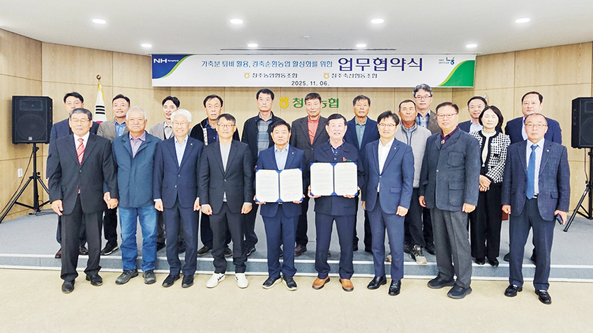 충북 청주축협(조합장 이종범)과 청주농협(조합장 이화준)은 지난 16일 청주농협 회의실에서 가축분뇨 퇴비를 활용한 경축순환농업 활성화를 위한 업무협약(MOU·사진)을 체결했다.