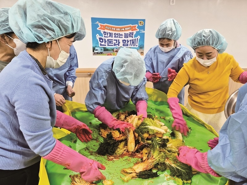 [축산신문 이일호 기자] 본격적인 김장철이다. 바야흐로 수육의 시기가 도래한 것이다. 사회 전반에 걸친 경기 침체와 소비 위축으로 어려움을 겪고 있는 양돈업계에서는 수육용 수요 확대에 대한 기대감도 높아지고 있다. 한돈자조금관리위원회는 올해에도 김장을 준비하는 사회복지단체 및 비영리 단체에 수육용 한돈을 후원하는 캠페인을 전개, 우리 고유의 김장 문화를 보존하고 지역사회 및 취약 계층을 돕고 있다. 사진은 한돈자조금 후원으로 복지단체에서 김장김치를 담그고 있다.