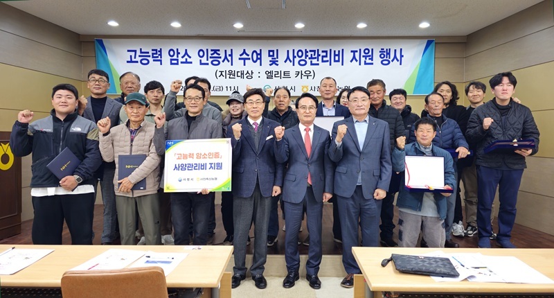 경남 사천축협(조합장 이형주)은 고능력 암소 보유농가의 자긍심을 높이기 위해 지난 21일 조합 회의실에서 ‘2025년 고능력 암소 인증서 수여식’<사진>을 열고, 올해 새롭게 고능력 암소를 보유한 농가에게는 인증패를 또, 고능력 암소로 신규 인증된 개체에는 인증서를 각각 전달했다.