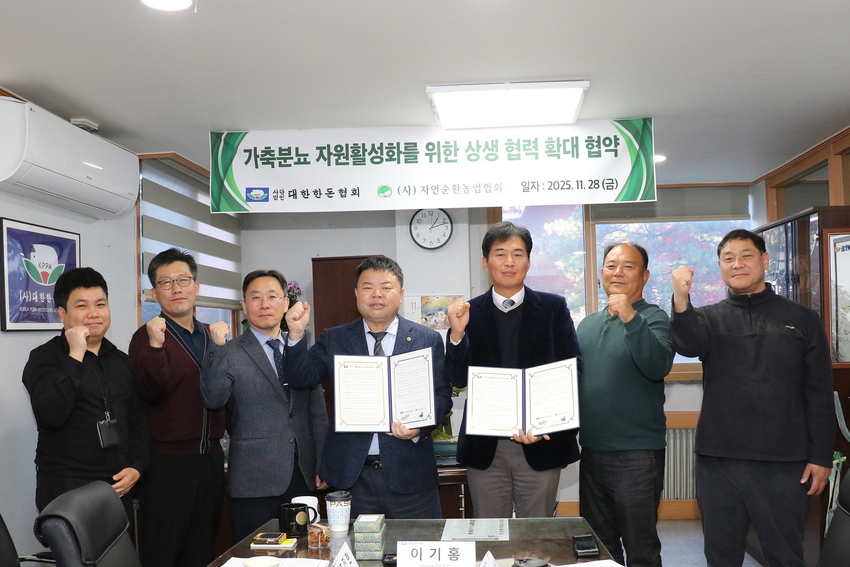 이영수 자연순환농업협회장도 “한돈협회와 협력 확대를 통해 가축분뇨의 안정적인 공급체계를 구축하고, 이를 통한 친환경 농자재 생산으로 자연순환농업의 경쟁력을 높여 나가겠다” 면서 “이번 협약은 가축분뇨를 자원으로 활용하는 순환농업 확대의 중요한 전환점”이라고 의미를 부여하기도 했다.