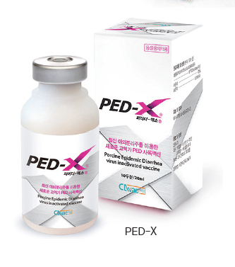 ‘PED-X’는 고역가 PED 사독백신이다. 역시 G2b 타입 PED 바이러스를 쓰고 있다.