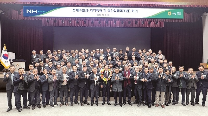 [축산신문 신정훈 기자] 농협경제지주 안병우 축산경제 대표이사가 ‘축산경제’ 수장 자리를 한번 더 맡게 됐다. 안병우 대표는 지난 9일 농협본관에서 열린 농협 축산경제 차기 대표이사 후보자 선출 선거에서 가장 많은 표를 얻어 3선 연임에 성공했다. 이날 3선에 성공한 안병우 대표는 오는 17일 열릴 예정인 농협경제지주 주주총회(100% 농협중앙회 지분)에서 최종 선임된다. 사진은 전국 축협 조합장들이 농협경제지주 축산경제 대표이사 선출 절차를 모두 마치고 3선에 성공한 안병우 축산경제 대표(앞줄 맨 가운데)와 기념 촬영을 하며 축하의 박수를 보내고 있다.