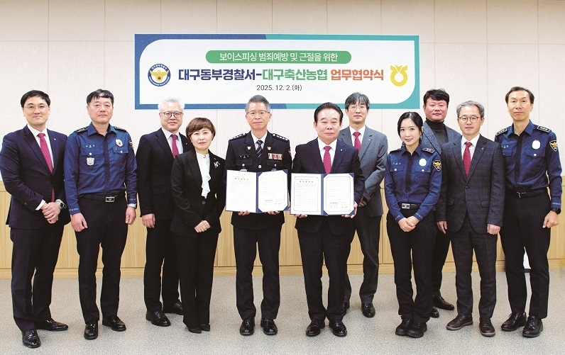 [축산신문 심근수 기자] 대구축협(조합장 최성문)은 지난 2일 대구동부경찰서(서장 장호식)와 보이스피싱 범죄 예방을 위한 공동 대응 업무협약을 체결<사진>했다.
