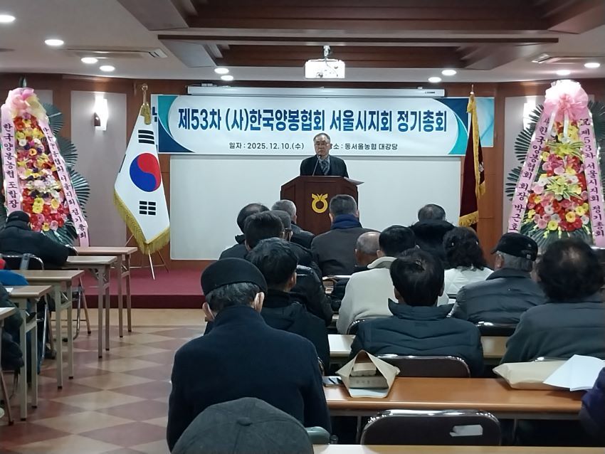 한국양봉협회 서울특별시지회(지회장 김진철)는 지난 10일 상봉동 동서울농협 3층 강당에서 2025년 제53차 정기총회<사진>를 열고, 그동안 회원들의 노고를 위로하며 올 한 해를 되돌아보면서 새해 새 출발을 다짐하는 시간을 가졌다.