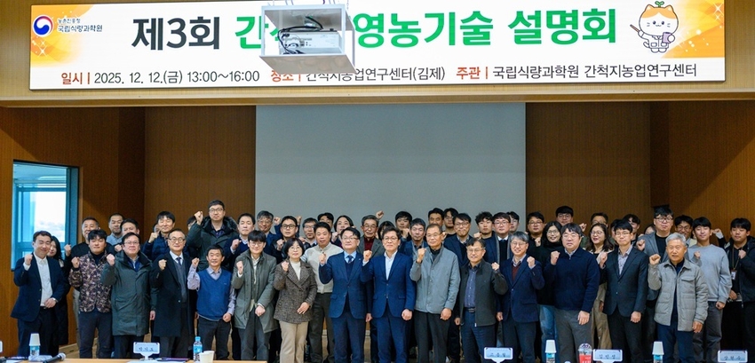 [축산신문 김수형 기자] 농촌진흥청(청장 이승돈) 국립식량과학원은 지난 12일 전북특별자치도 김제 간척지농업연구센터에서 ‘2025 간척지 영농기술 설명회’를 열고 간척지 대규모 영농을 위한 최신 기술과 연구 성과를 공개했다.
