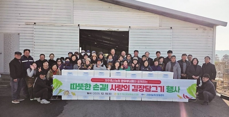 제주축협 한우부녀회는 매년 겨울을 맞아 사회적 배려가 필요한 곳에 나눔을 실천하기 위해 김장담그기 행사를 이어오며 지역사회에 선한 영향력 확산에 동참하고 있다.