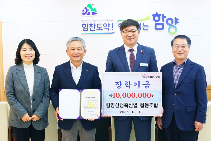 진병영 (재)함양군장학회 이사장은 “여러 해 동안 변함없이 장학금 기탁을 이어오고 있는 함양산청축협에 깊이 감사드린다”며 “전달된 장학금은 함양의 미래 인재들이 꿈을 키워 나가는 데 든든한 밑거름이 될 것”이라고 전했다.