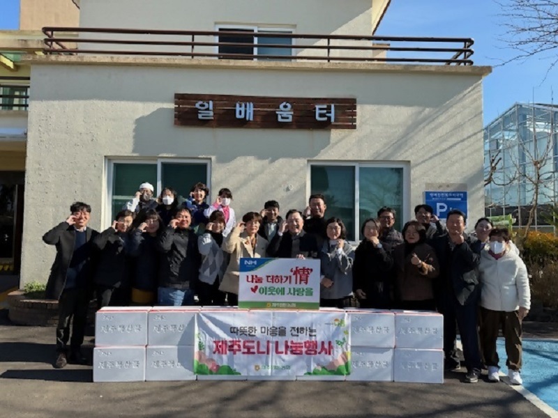 [축산신문 윤양한 기자] 제주양돈농협(조합장 고권진)은 지난 6일 일배움터(시설장 오영순)를 방문해 돼지고기(140kg)를 전달하는 나눔행사<사진>를 개최했다.