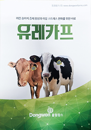 ‘유레카프’는 어린 송아지 증체 향상과 이유 스트레스 완화를 위해 동원사료가 기술력을 집약한 사료다. 어린 송아지가 섭취하는 최초의 고형사료로 생후 3일령부터 이유 시까지 어린 송아지를 위해 고급유제품, 곡류, 단백질 원료, 비타민과 미네랄을 강화하여 만든 송아지 입붙이기 전용 사료다.
