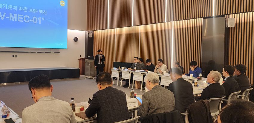 이날 발표회에서 유성식 중앙백신연구소 해외사업본부장은 “국내에서 분리한 ASF 백신 후보주를 다수 확보했다. 100여 차례 차세대 염기서열분석(NGS), 30여 차례 500여마리 목적동물 실험 등을 거처 최적 백신주를 선별했다. 그렇게 ‘ASFV-MEC-1’을 찾아냈다”고 밝혔다.