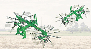 얀마 레이크(집초기)는 비굴절식과 굴절식 2종류가 있으며 핸들을 사용한 손쉬운 타이어 높이 조절과 주행 중 안전을 위한 잠금장치가 있다. ▲비굴절식(YNK-R550)은 최소 80마력 이상의 트랙터 동력이 필요하며 작업의 속도감과 작업 효율성이 뛰어나 작업자의 만족도를 높여준다. 작업 폭은 작업조건에 따라 5.5M이며, 이동 폭은 2.585M, 중량 870kg 로터 2, 타인 84개, 타인 암 18개이다. ▲굴절식(YNK-R550P)은 최소 80마력 이상의 트랙터 동력이 필요하며 작업의 속도감과 작업 효율성이 뛰어나 작업자의 만족도를 높여준다. 작업 폭은 작업조건에 따라 5.5M이며 이동 폭은 2.585M, 중량 984kg 로터 2, 타인 84개, 타인 암 18개이다. 굴절 실린더는 유압 레버를 사용한 간단한 작동과 날개 펼침에서 자동 굴절 레버 해제로 코너링 작업이 부드럽고 날개 접힘에서 자동으로 프레임이 중심으로 이동하고 굴절이 고정된다.