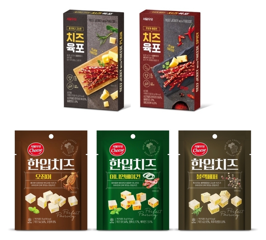 서울우유협동조합(조합장 문진섭)은 독보적인 유제품 경쟁력을 앞세워 쫄깃한 쇠고기와 고소한 플레인 치즈가 만난 ‘서울우유 치즈육포’, 어포 기반의 스낵치즈 ‘한입치즈 3종’ 등 차별화된 치즈 안주 제품을 선보이며 시장을 선도하고 있다.