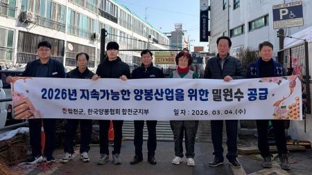김윤철 합천군수는 “건강한 밀원수 확보는 곧 안정적인 꿀 생산으로 이어질 것”이라며 “밀원 기반 확충을 통해 양봉농가의 경영안정을 뒷받침하고, 장기적으로는 지역 양봉산업 경쟁력을 높여 나가겠다”고 말했다.