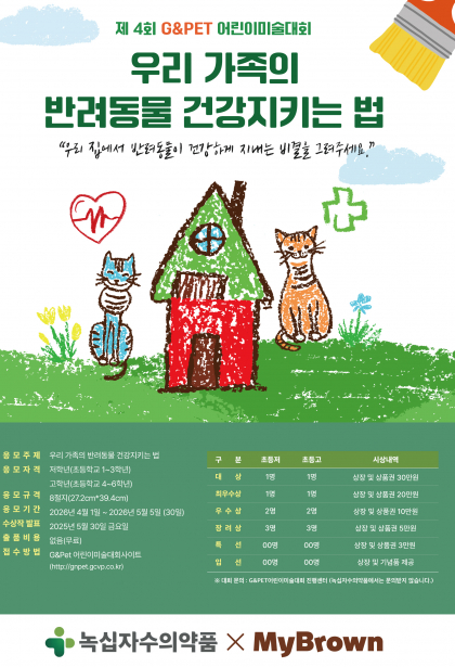 녹십자수의약품(대표 나승식)은 ‘제4회 G&Pet 어린이 미술대회’를 열고, 어린이와 반려동물 교감 확산에 나선다.