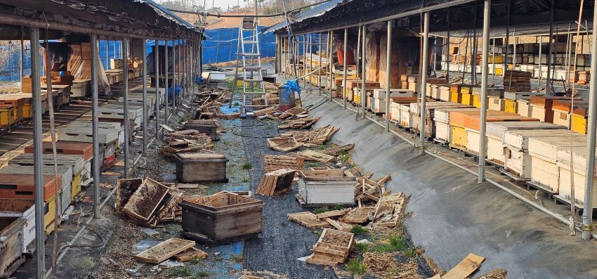 실제로 전북 김제시 관내 2곳(백산면·공덕면)에 소재한 착한벌집꿀농장(대표 안관호)이 지난해 농약 살포로 꿀벌이 몰살당하는 큰 피해를 봤다. 지난 11일 이곳을 가보니 양봉장은 그야말로 융단폭격을 맞은 듯 현장은 아비규환 그 자체였다. 자체 추산 피해액만도 2억5천만원에 달해 가해자와의 합의가 안 된 상황에서 긴긴 법정 싸움을 이어가고 있다.
