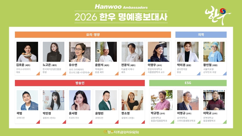 한우자조금관리위원회 민경천 위원장은 “각 분야 전문가들이 가진 영향력을 통해 한우의 가치가 보다 친숙하게 전달될 것으로 기대한다”며 “한우가 일상 속 건강한 식문화로 자리 잡을 수 있도록 지속적인 홍보 활동을 이어가겠다”고 말했다.