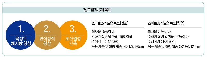 이런 특징을 장착한 만큼 목표도 뚜렷하다. ‘빌드업 프로그램’의 3대 목표가 그것이다. 첫째, 육성우 체성장 향상이다. 둘째, 번석성적 향상이며, 셋째, 초산월령 단축이다.