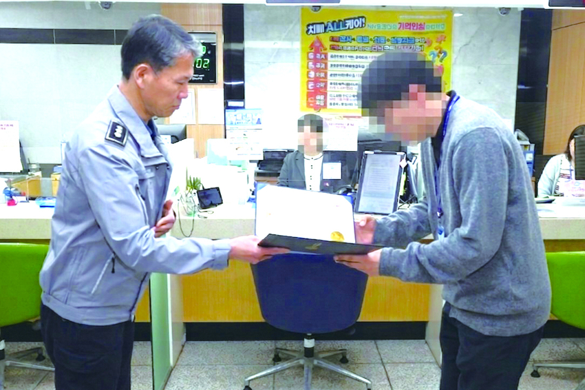 이 과정에서 A씨가 인출 목적을 바꿔가며 횡설수설 하자 창구 직원과 지점 과장은 상담을 이어가며 시간을 끌었고, 계좌 내역을 통해 1원 입금 및 반복적인 현금 인출 등 사기 의심 징후까지 포착했다.