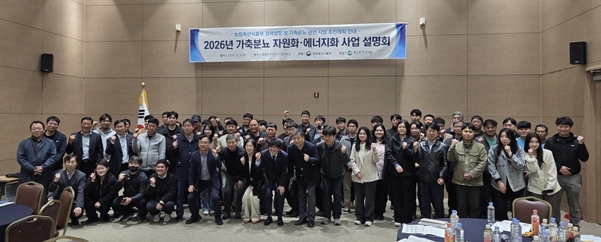 농림축산식품부와 축산환경관리원은 지난 9일, 세종컨벤션센터 중연회장에서 ‘2026년 가축분뇨 자원화‧에너지화 사업설명회’를 갖고 농가 단위의 가축분뇨 처리 어려움을 해소하고 탄소중립을 실현하기 위한 ‘2027년 가축분뇨 공동자원화시설 지원사업 신규 선정 계획’을 발표했다.
