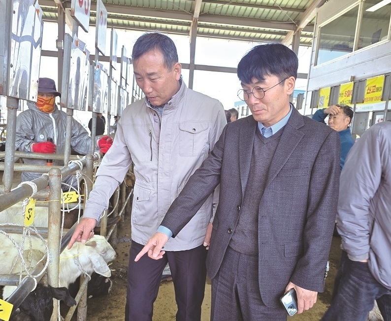 충북도 축산과 엄주광 과장이 지난 7일 충주축협 염소경매시장을 방문<사진>해 현장 점검과 함께 농가 애로사항을 청취했다.