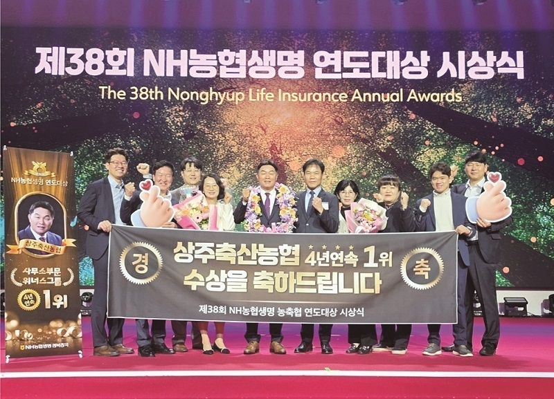 [축산신문 기자] 경북 상주축협(조합장 김용준)이 지난 8일 인천 파라다이스시티 호텔에서 열린 ‘제38회 NH농협생명 연도대상’ 시상식에서 4년 연속 사무소 부문 대상을 수상<사진>했다.