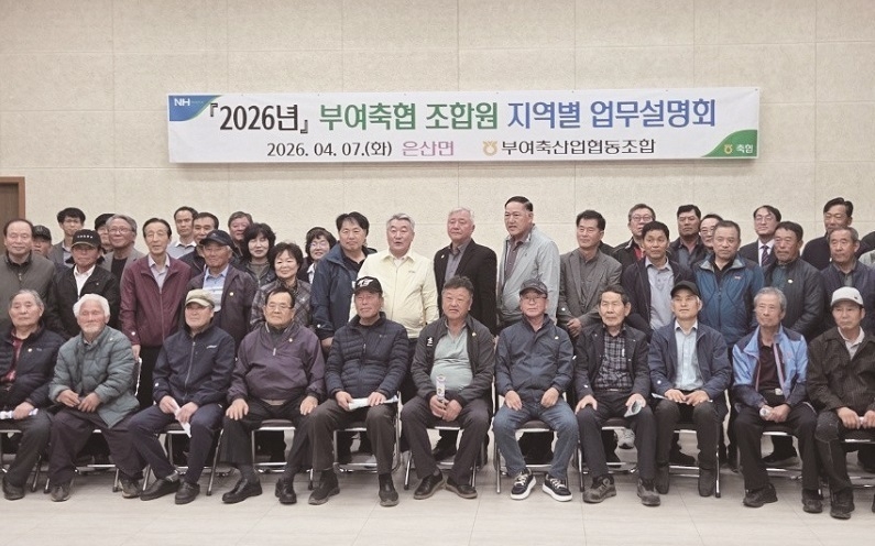 [축산신문 황인성 기자] 충남 부여축협(조합장 정만교)은 지난 3월 20일부터 4월 30일까지 2026년 지역별 업무설명회<사진>를 전개하고, 조합과 조합원이 하나 되어 부여축협 발전에 앞장설 것을 다짐하는 시간을 가졌다.